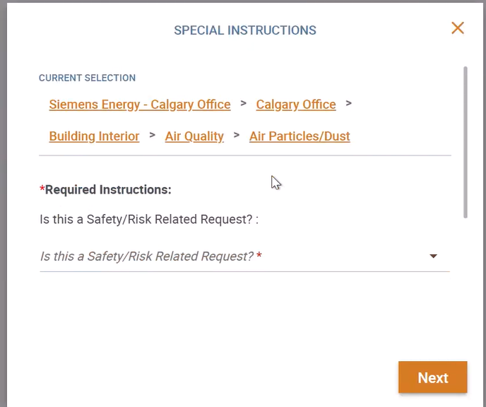 Which Work Order field should I set to create "Special instructions"-"Required Instructions"-"Is this Safety Related Request" that corresponds to the image below?